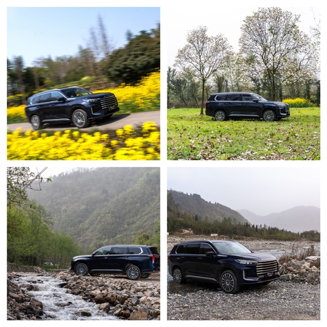 作为星途旗舰车型,揽月C-DM搭载全球首创的四擎四驱超混系统,1.5T混动专用发动机与三电机组合可迸发619Ps综合功率、920N·m峰值扭矩,零百加速5秒级。而真正令其脱颖而出的,是电四驱+CDC电磁可变阻尼减震器+铝合金H臂悬架的黄金组合。这套系统在极限测试中展现惊人的稳定性,配合飞鱼底盘的液压隔振技术在湿滑路面同样大显奇能。